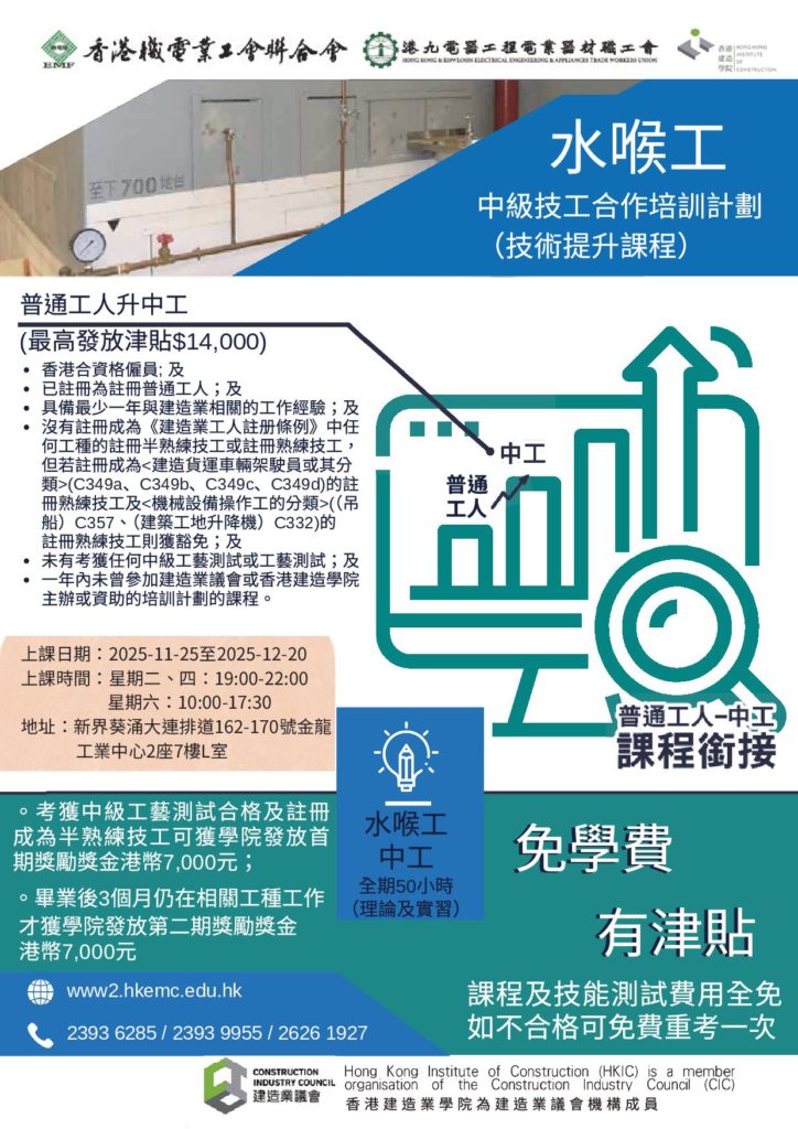 中級技工合作培訓計劃-技術提升課程(水喉工)