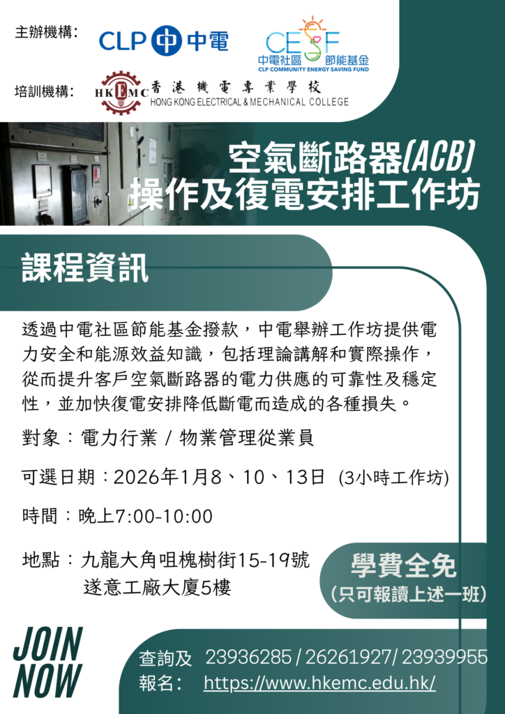 空氣斷路器(ACB) 操作及復電安排工作坊