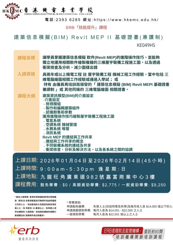 持有 由僱員再培訓局頒發的「 建築信息模擬 (BIM) Revit MEP