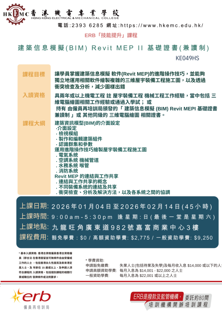 建築信息模擬(BIM)Revit MEP II 證書(兼讀制)