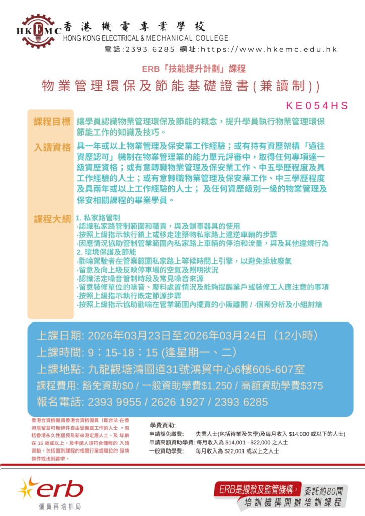 讓學員認識物業管理環保及節能的概念,提升學員執行物業管理環保節能工作的知識及技巧。